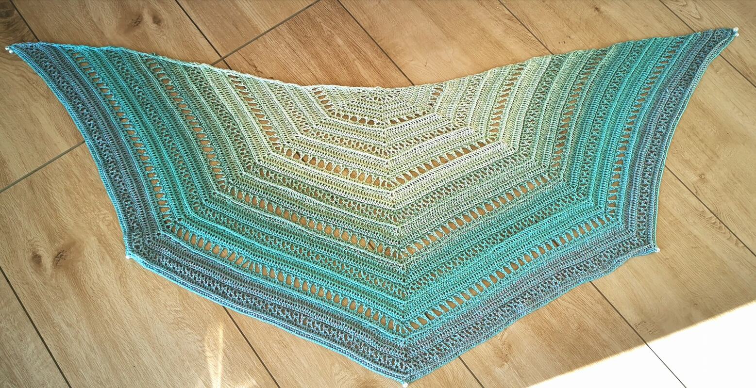 Mein Tuch ist bei 1500lm ca 180x60cm (ohne Quasten). Es ist in jeder beliebigen Größe umsetzbar.