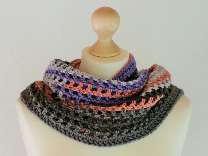 Der Dreiecksschal „Josephine“, liebevoll auch V-Schal genannt, ist ein einfaches Häkelprojekt, das sich schnell nacharbeiten lässt. Das leichte, eingängige Muster macht ihn perfekt für entspannte Fernsehabende oder gemütliche Stunden.
