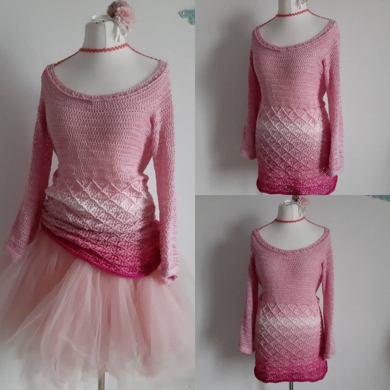 Beim vorgestellten Produkt handelt es sich NICHT um das fertig gehäkelte Kleidungsstück, sondern um eine Anleitung in Schriftform mit Häkelschrift, um dieses Kleidungsstück selbst zu häkeln.