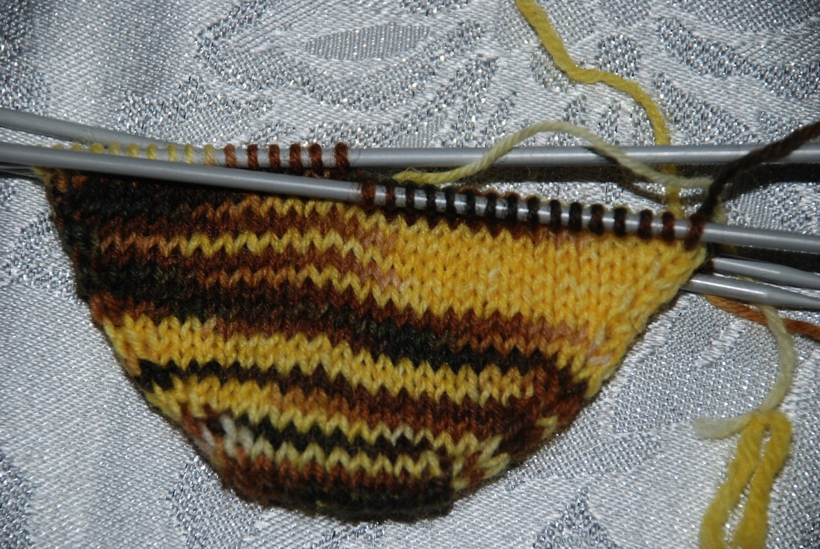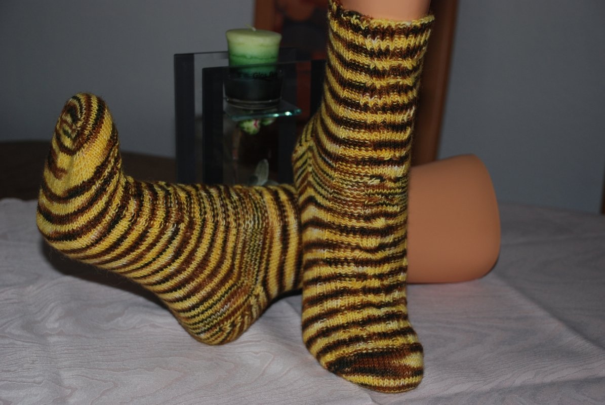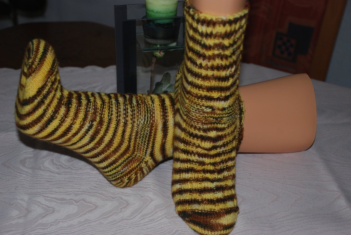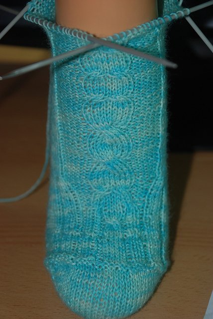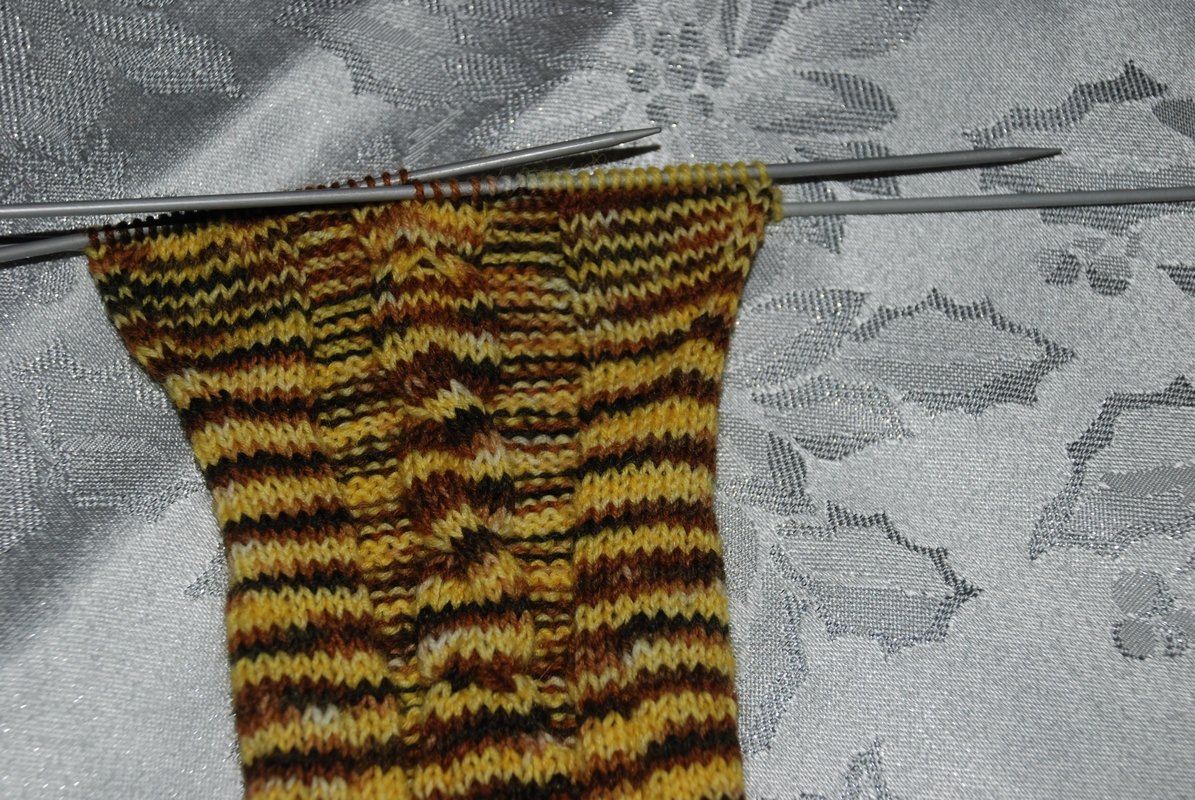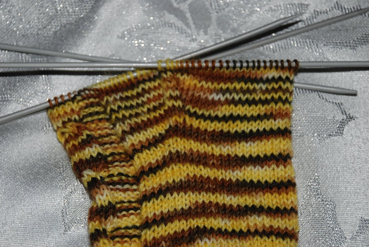 Hier könnt ihr eine Toe-up Socke stricken mit schönem Muster.