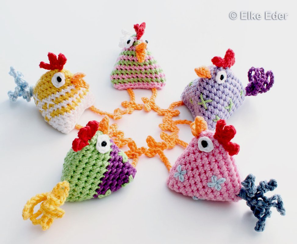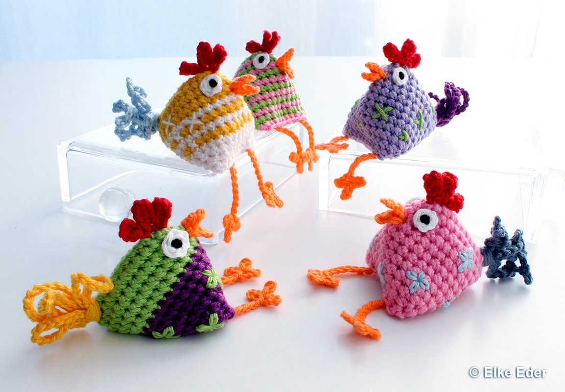 Tolle Anleitung, tolle Idee, lustige Hühner sind schnell fertig gehäkelt.