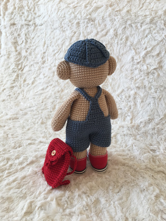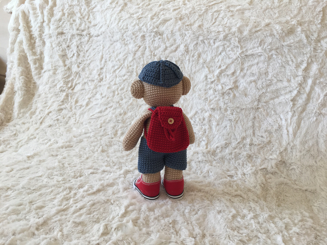 1 Knäuel in Wunschfarbe für die Kleidung/ Rucksack, Reste in weiß und einer Wunschfarbe für die Schuhe
