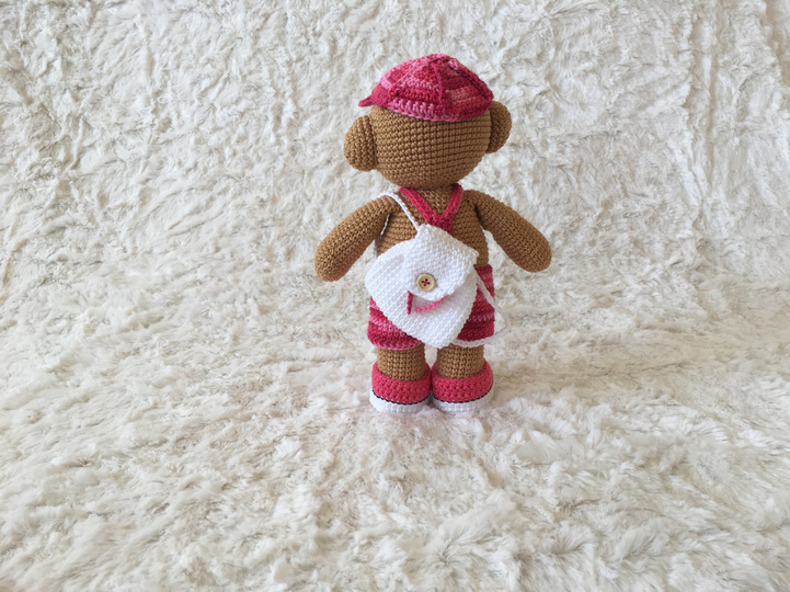 Die Anleitung beinhaltet die Kleidung, Basecap und Schuhe, sowie einen Rucksack und das Haarband.