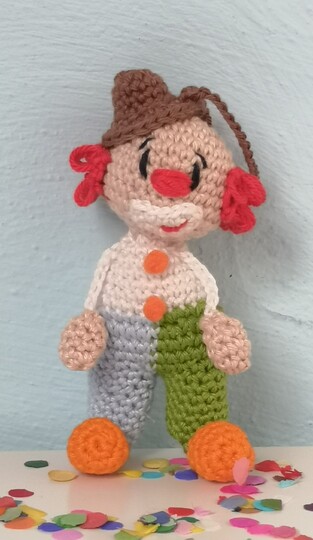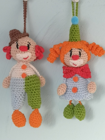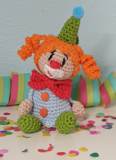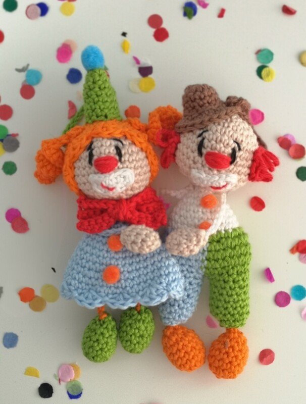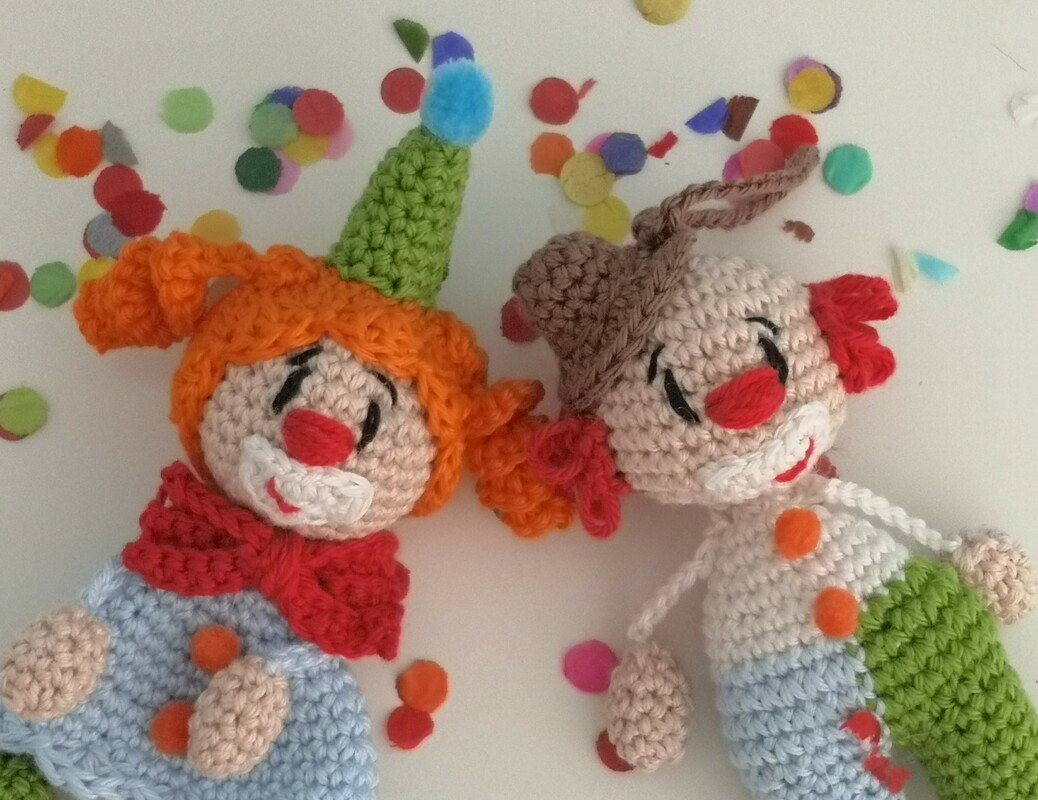 Mit dieser Häkelanleitung häkelst man aus Wollresten im Nu die beiden lustigen Clowns Lissy und Lino.