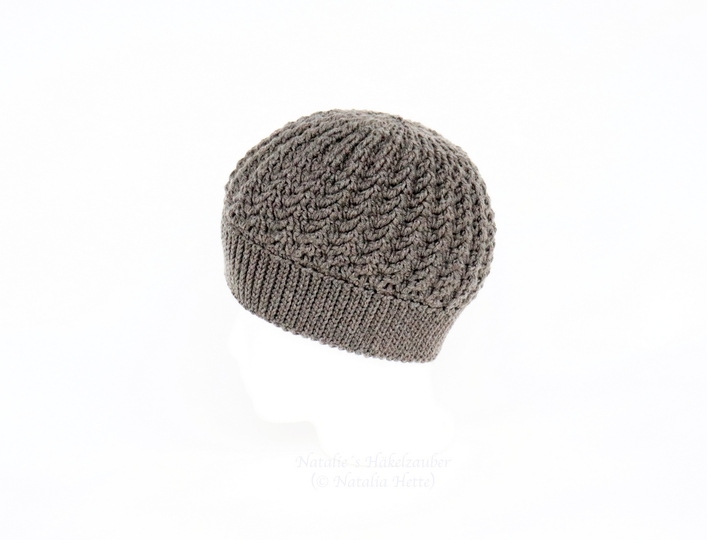 Diese PDF-Häkelanleitung besteht aus bebilderter Anleitung zum Häkeln einer Mütze mit dem Reliefmuster. Das Bündchen sieht wie gestrickt aus. Eine weitere Variante wäre die Mütze mit dem Aufschlag zu häkeln, was sehr leicht zu erreichen ist, in dem man mehr Maschen bei dem Bündchen häkelt. Man kann mit dieser Anleitung auch eine herabhängende Mütze häkeln.