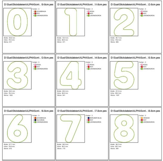♥ Stickdatei Doodle Buchstaben und Zahlen in 8 cm Höhe ♥