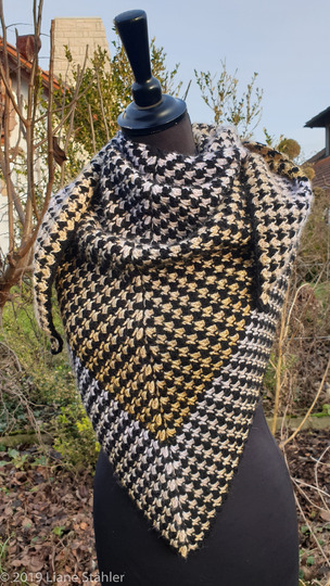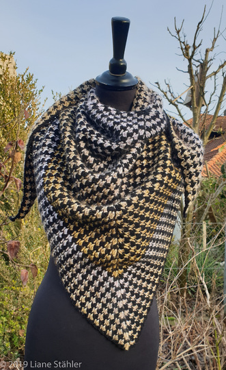 In meinem Set "Pepita-Tuch&Stulpen“ findet Ihr die Anleitung für das Dreieckstuch und die Stulpen, nach deren Anleitung Ihr auch einen Schal in waagerechten Reihen arbeiten könnt.