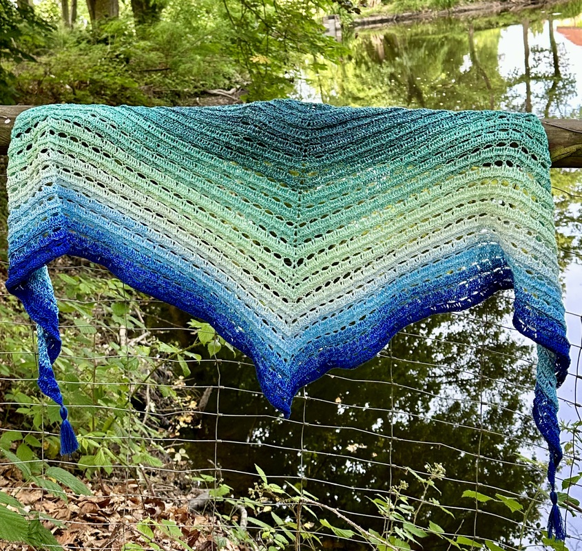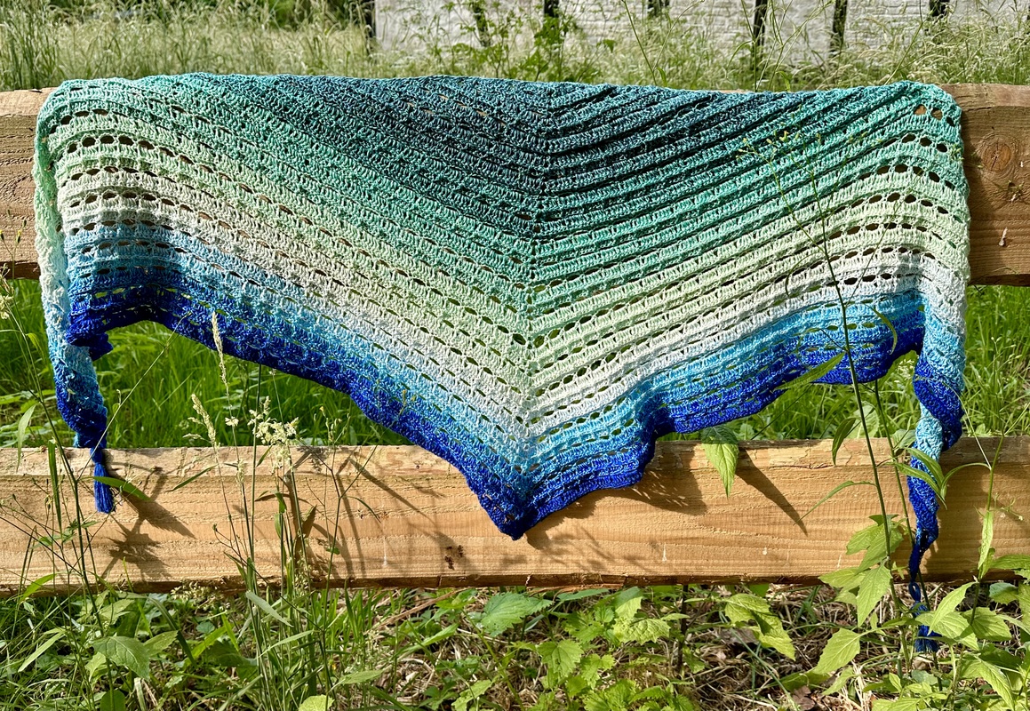 Zum Nacharbeiten wird ein Farbverlaufsbobbel (3- oder 4-fädig) mit 1000m Lauflänge benötigt. Dazu eine passende Häkelnadel, sowie eine Stopfnadel und Schere, um die Fäden zu vernähen.