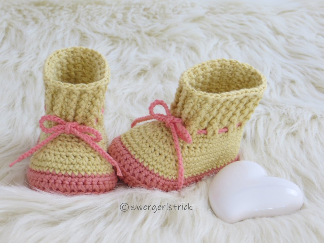 Häkelanleitung - Booties mit Rippbündchen - für Babys in 3 Größen