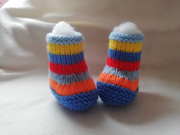 Diese süßen Babyschuhe sind leicht zu stricken, Sie müssen nur rechte und linke Maschen stricken können. Der Rest wird in jeden Schritt erklärt. Somit können Sie für das eigene Baby schnell stricken oder aber auch die Schuhe mit Sohlenlänge von 8 cm verschenken. Gestrickt wird mit weicher Wolle und mit Nadel Nr.4. Ganz ohne Nadelspiel sind die Schuhe schnell gefertigt.