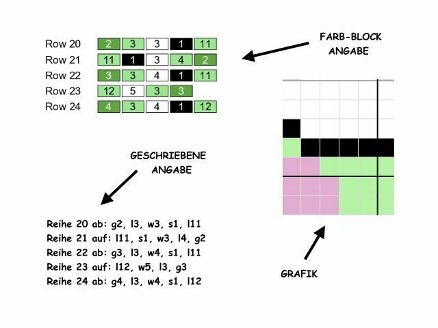 -farbige Zahlen-Blöcke für jede Zeile für C2C-Technik