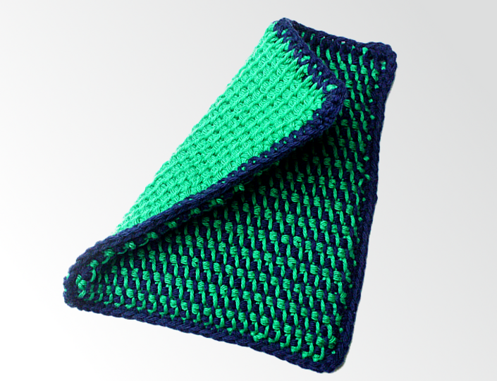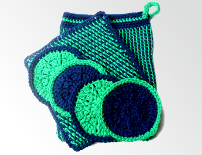 Wasch- und Spüllappen werden tunesisch gehäkelt und der Waschlappen wird in Runden, also ohne Seitennaht gearbeitet.