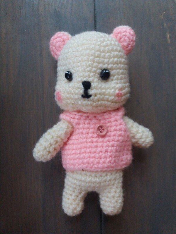 Das ist die Häkelanleitung für einen Hasen und Bär mit Tuch oder Pulli.