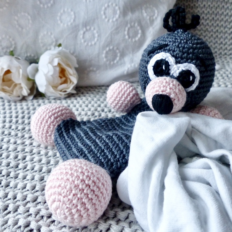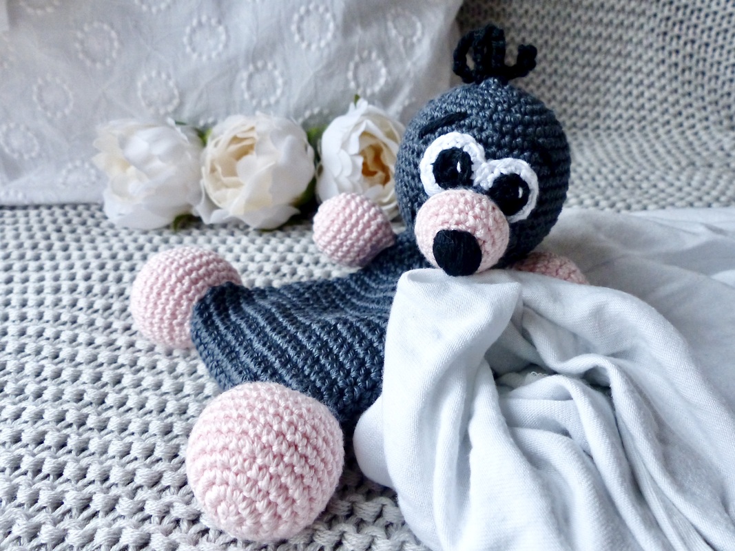 Dieser süße Maulwurf möchte gerne als Knistertuch oder Schmusetuch für die Allerkleinsten gehäkelt werden.