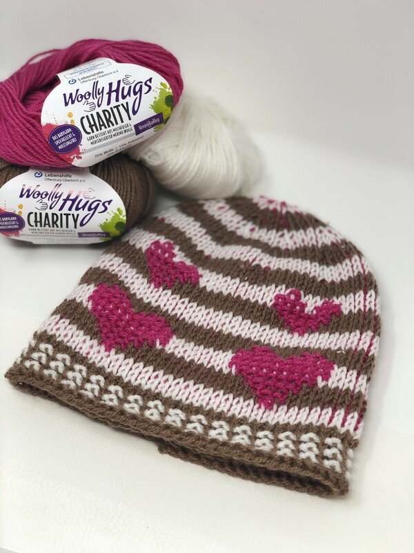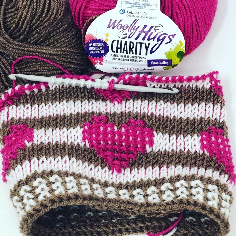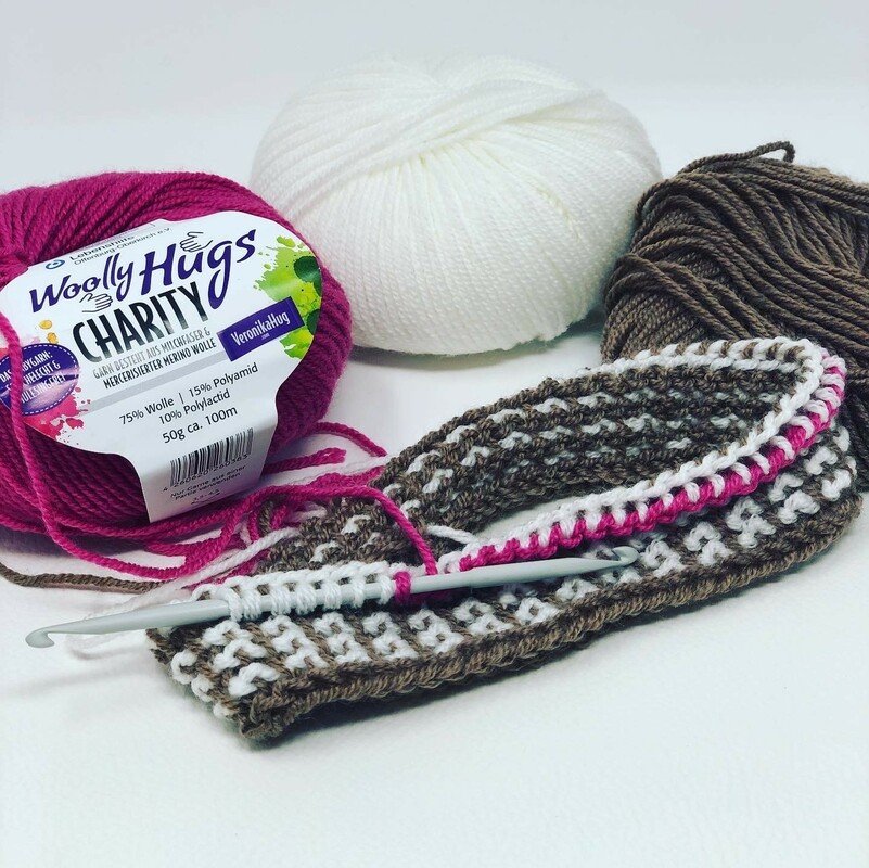 Material: Woolly Hugs CHARITY (75% Wolle, 15% Polyamid, 10% Polylactid, LL = 100 m/50 g) von Langendorf & Keller (L&K),