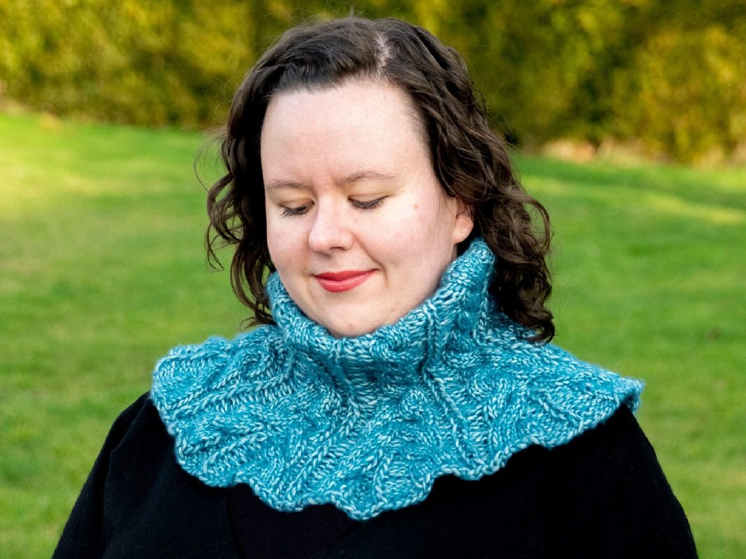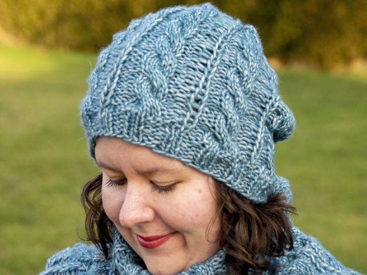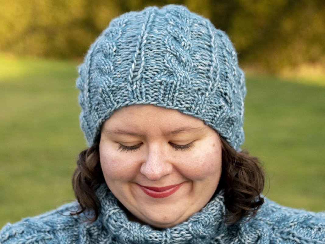 Die Anleitung enthält Erläuterungen für einen halsnahen Cowl und eine Mütze. Beide sind anpassbar mit einem Mustersatz von zunächst 11 Maschen. Außerdem werden 6 verschiedene spezielle Maschen mit Tutorials bebildert erklärt. Das Muster ist damit auch anfängertauglich.