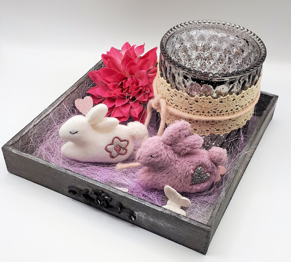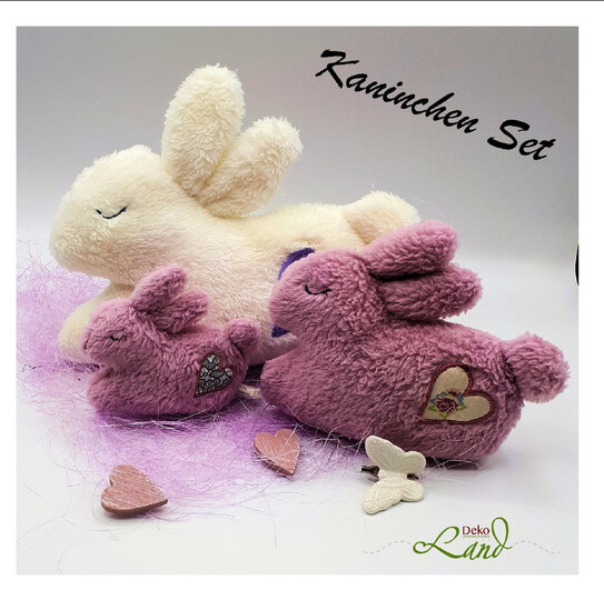 Drei Größen in einem Set. Komplett in einem Rahmen gestickt. Jede Rahmengröße enthält zwei Varianten. Mit Herz und mit Blumenapplikation. Im Shop auch als Einzelgrößen erhältlich.