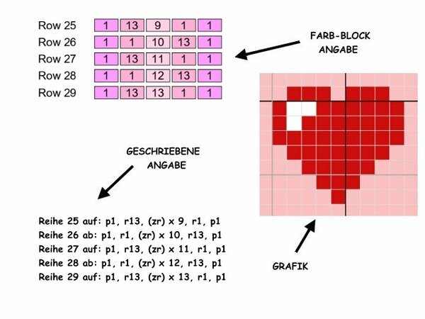 -farbige Zahlen-Blöcke für jede Zeile für C2C-Technik