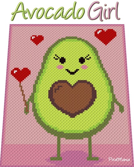 Avocado Girl ist ein digitales Diagramm, das für verschiedene Häkeltechniken verwendet werden kann, wie Ecke zu Ecke = C2C, Mini C2C, feste Maschen, halbe Stäbchen, Stäbchen, tunesisch häkeln, Bobble Stitch. Alternativ kann dieses Produkt auch für Kreuzstich, Stricken, Hamma-Perlen, Kunststoff-Leinwand und andere Projekte verwenden werden.