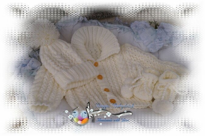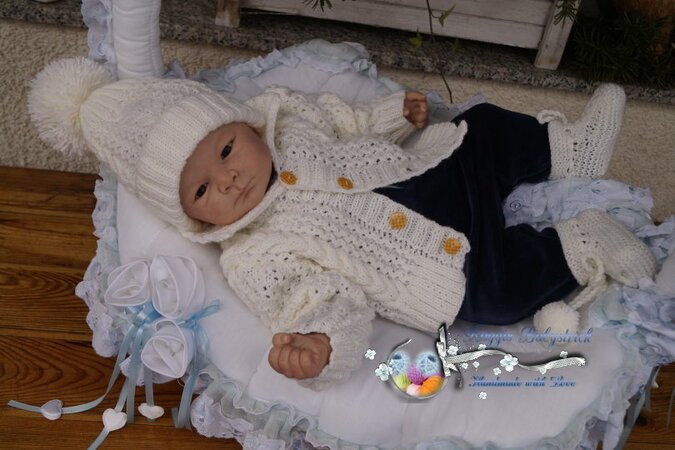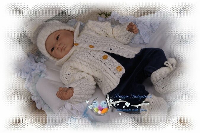Strickanleitung für ein wunderschönes Set, 3-teilig für Babys & Reborns, Gr. 56 - 62. Das Set ist aus Babysoftwolle Nd. - Nr. 2,75 gestrickt. Die Anleitung ist sehr genau beschrieben und mit vielen Fotos versehen. Du kannst mit dieser Schritt – für – Schritt – Anleitung dieses Set gut nacharbeiten.