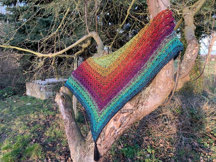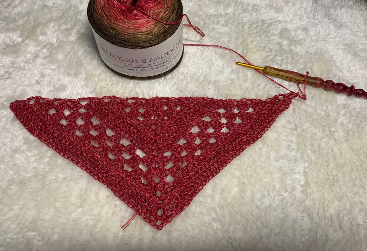 Das Tuch kann in jeder beliebigen Größe gearbeitet werden.