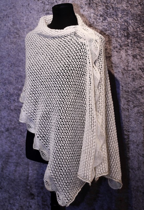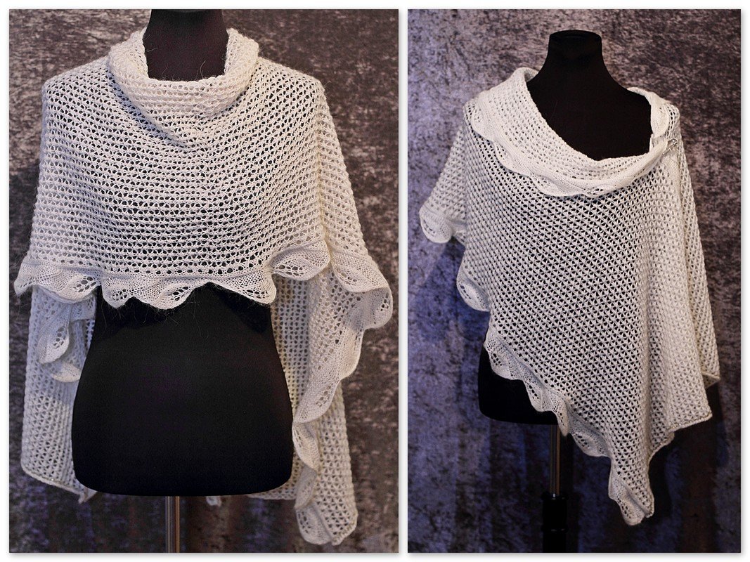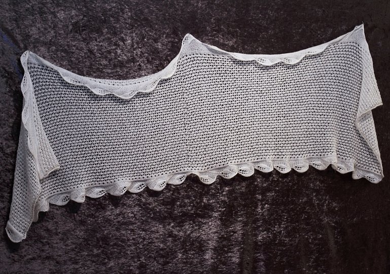Das Tuch wird aus zarter Lace- oder Sockenwolle gestrickt, um den luftigen Charakter der Stola zu bewahren.