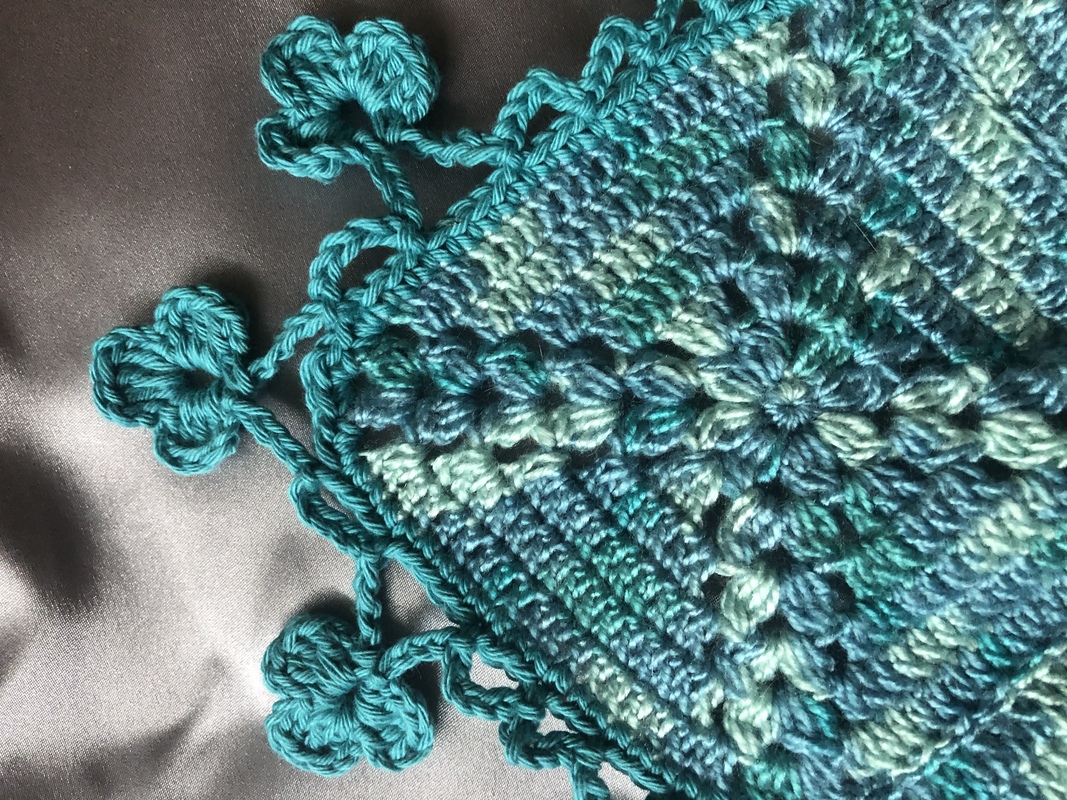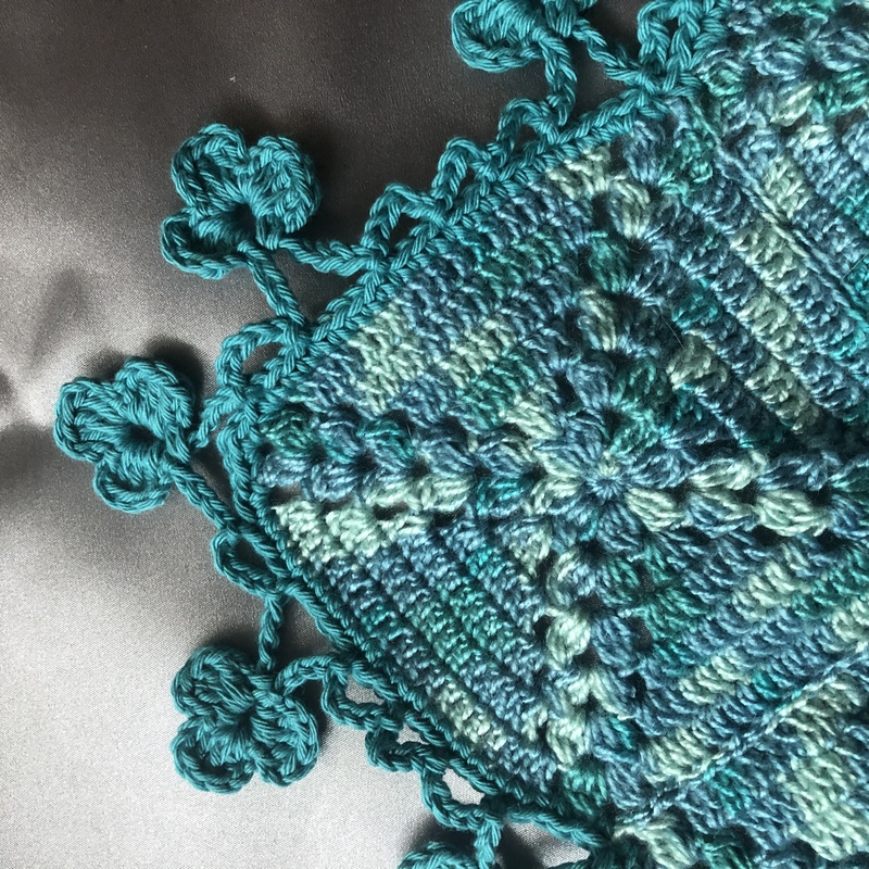 Dieses wunderschöne Tuch (B 1.40 x H 0,66) bedeutet etwas Fleißarbeit, denn es besteht aus 45 Einzelteilen, aber es lohnt sich auf jeden Fall. Ihr könnt gerade diese Farbe super zu Jeans kombinieren aber auch zu anderen Farben wie schwarz oder weiss. Wenn ihr das Muster mehr im Vordergrund stellen wollt, solltet ihr es unifarben häkeln. Da die Quadrate einfach zu häkeln sind, ist das Tuch auch für Anfänger mit Grundkenntnisse geeignet. Viele Fotos unterstützen noch zusätzlich die Beschreibung. Solltet ihr euch dazu entscheiden, das Tuch nachzuarbeiten, wünsche ich euch viel Spass und Erfolg.