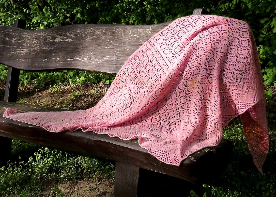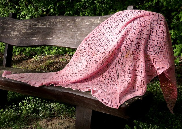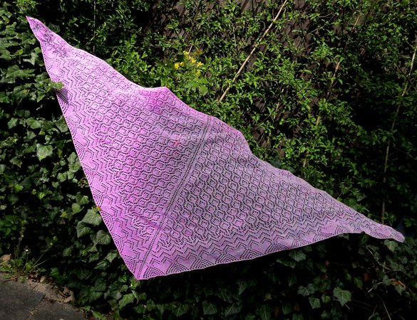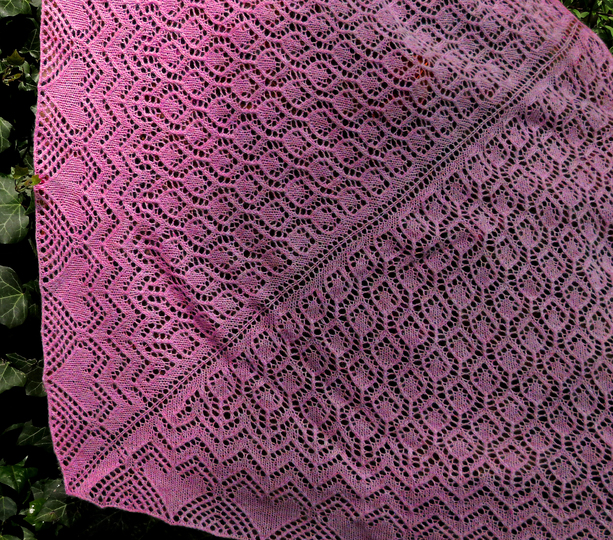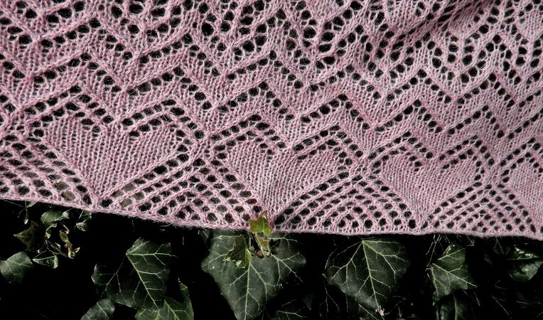 Abgeschlossen wird es mit einer Herzborte, die das Tuch zu einem absoluten Hingucker macht. Mit einem irisierenden Garn kann es z.B. auch als Abendstola getragen werden.