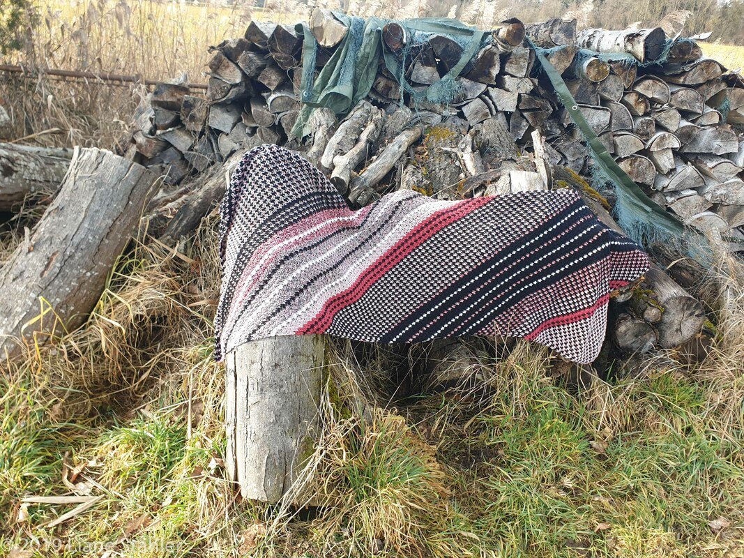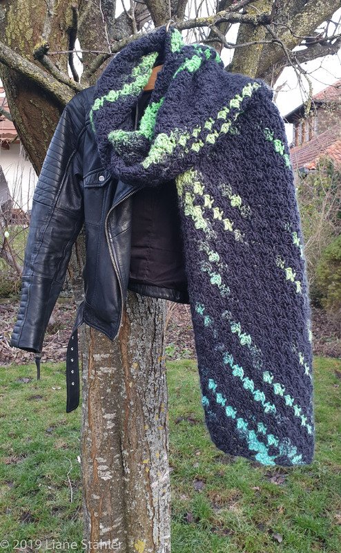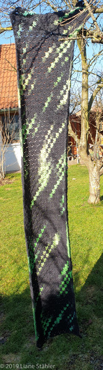 Der dicke Schal aus einer Wolle ist 200 cm x 45 cm.