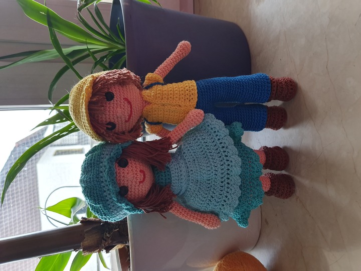 Mit der in der Anleitung angegebenen Wolle und Größe der Häkelnadel, werden Emma und Emil ca. 15-20 cm groß