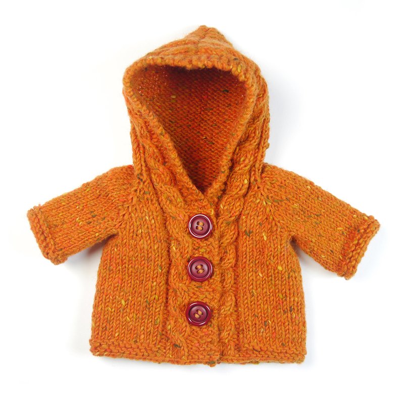 Puppenmuttis werden strahlen: Mit dem schönen Kapuzenmantel, kuscheligen Schuhen, einem superweichen Mohairpullover und langen Hosen ist ihre Puppe für den Winter bestens ausgestattet.