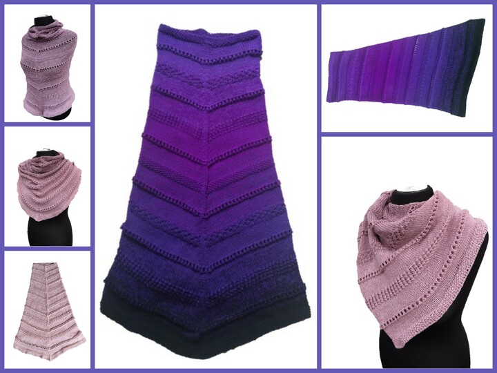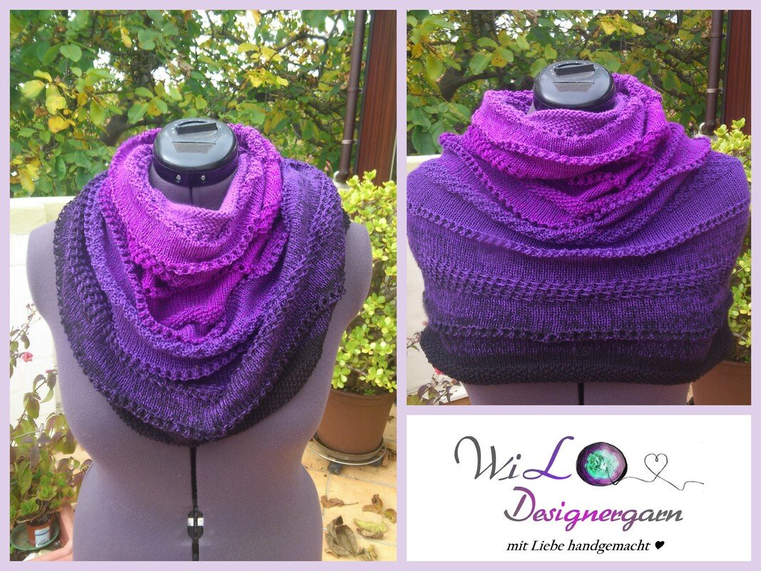 Der Schal kann mit jedem beliebigen Garn und der passenden Nadelstärke nachgearbeitet werden.