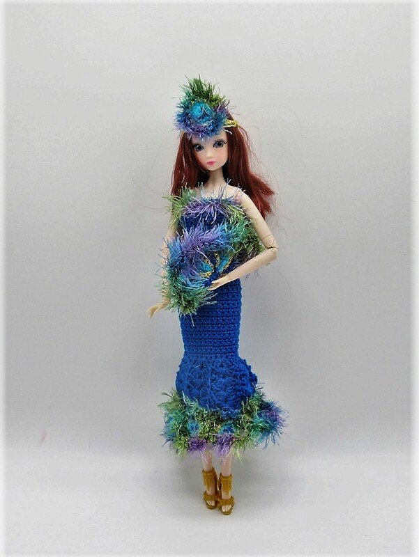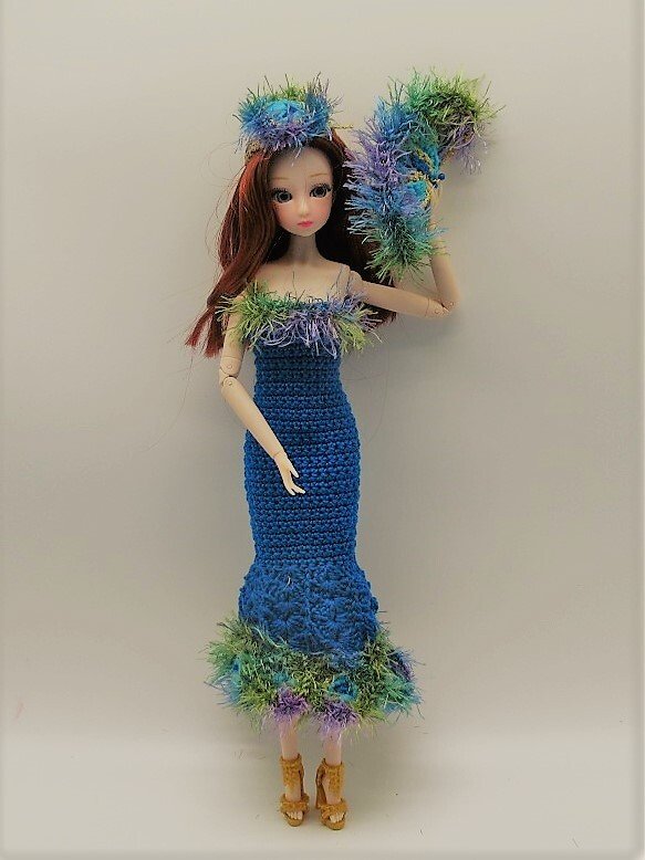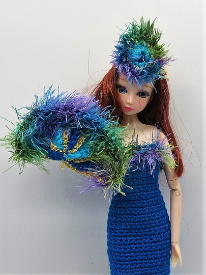 In der Häkelanleitung findest du die Beschreibung für das Kleid, den Kopfschmuck und den Fächer.