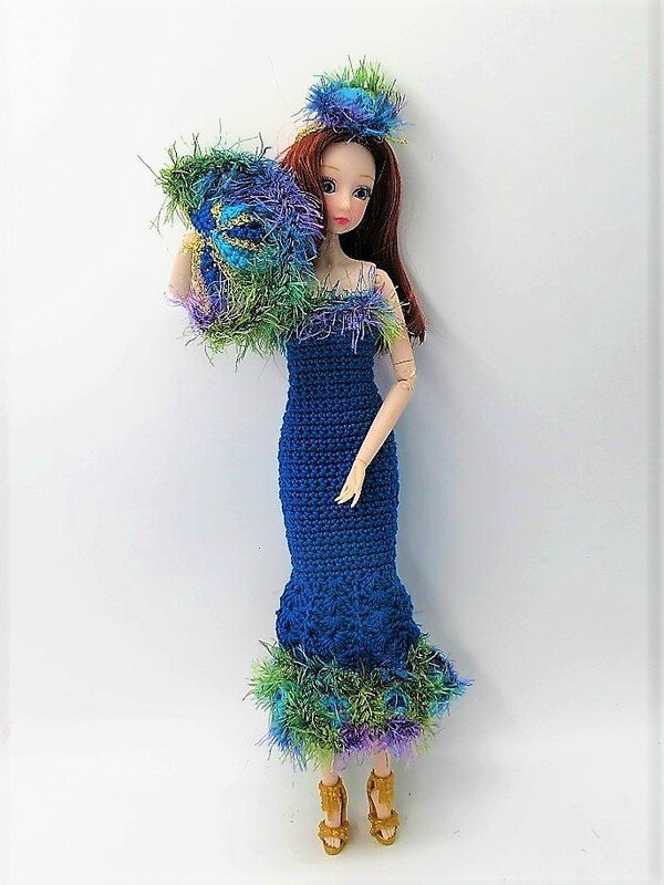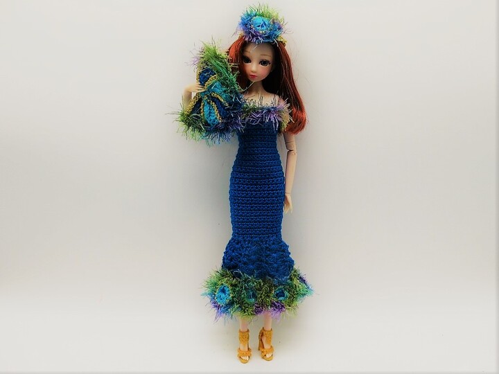 Ballsaison! Da müssen auch die kleinen Anziehpuppen ganz besonders herausgeputzt werden! In diesem prächtigen Abendkleid im Pfauendessin wird jede zur unbestrittenen Ballkönigin, egal ob sie blond, dunkel- oder rothaarig ist.