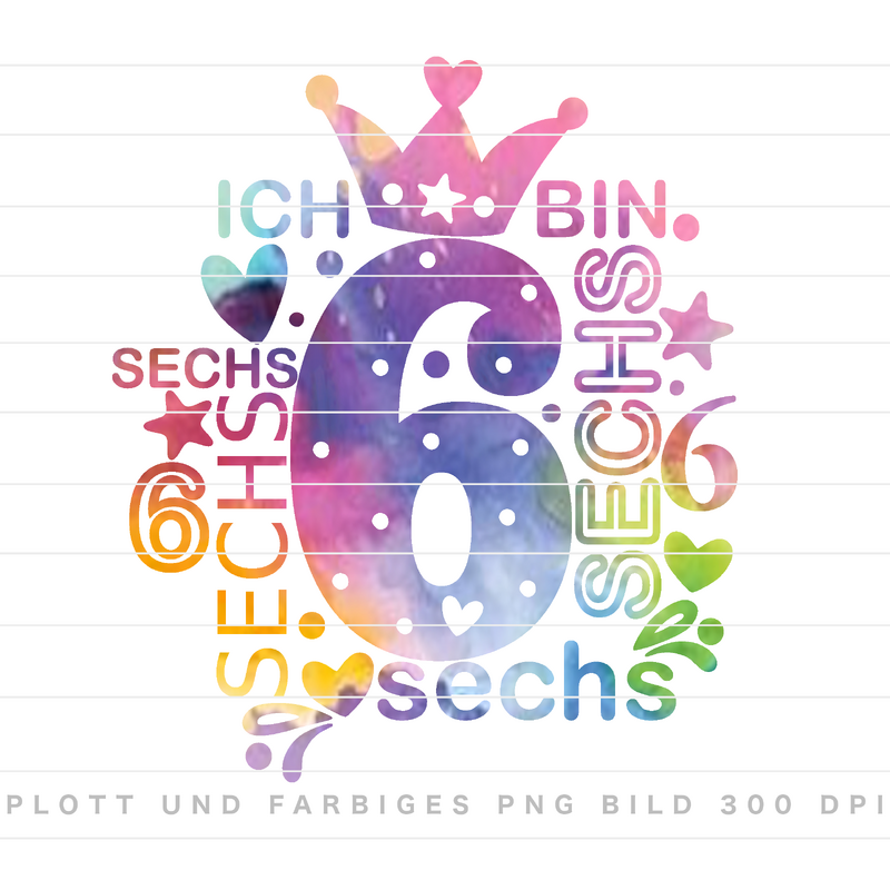 Extra: Eine farbige PNG und JPG 300 DPI Datei für Druck und Sublimation.