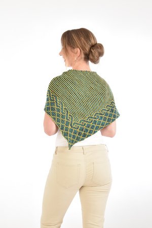 Poseidon Tochter - ein Mosaik Dreieckstuch zum Selberstricken. Das Tuch wird quer gestrickt und kann leicht in der Form und der Größe angepasst werden.