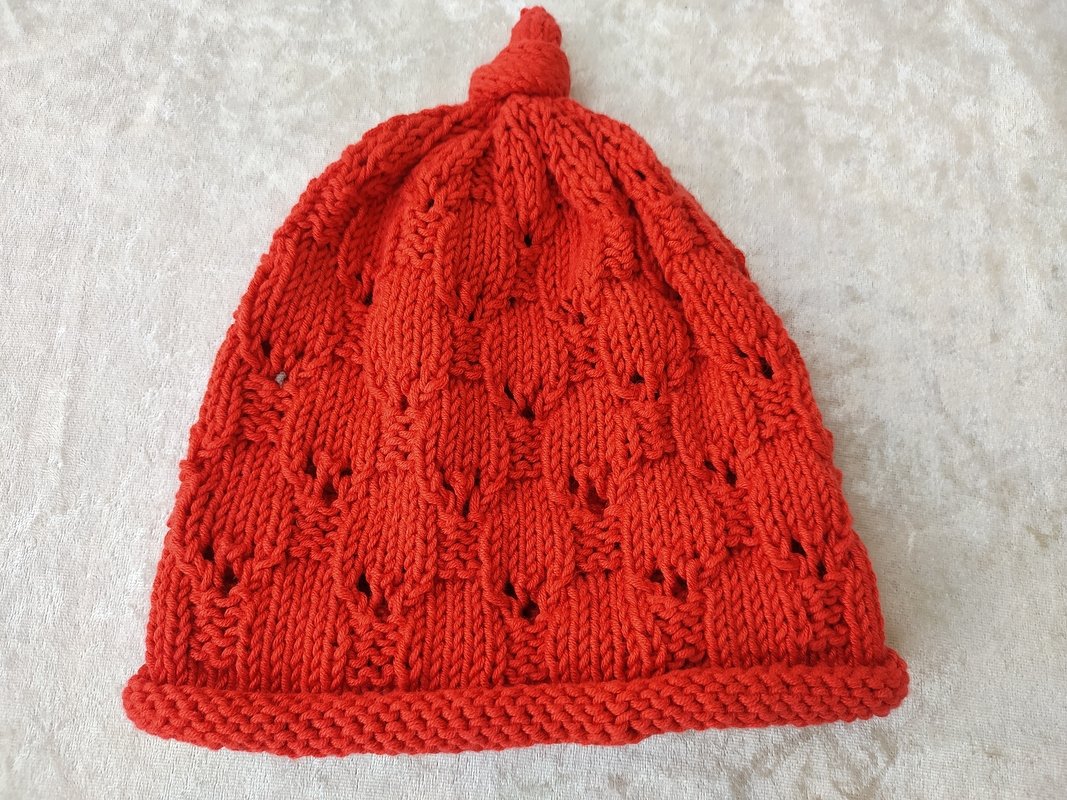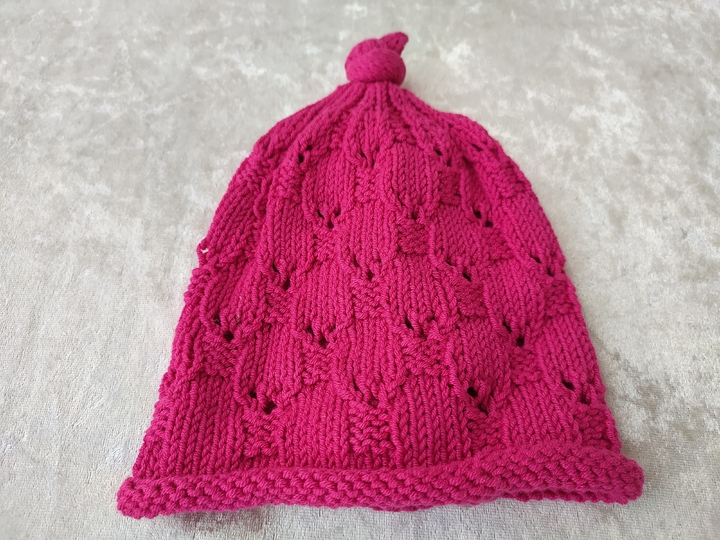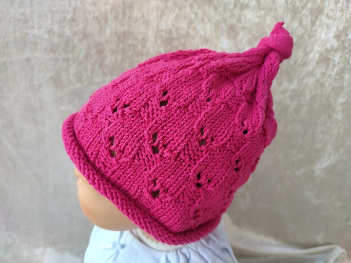 Dieses Mützchen mit dem schönen Rollrand und dem tollen Lochmuster ist ideal für die etwas wärmere Jahreszeit.