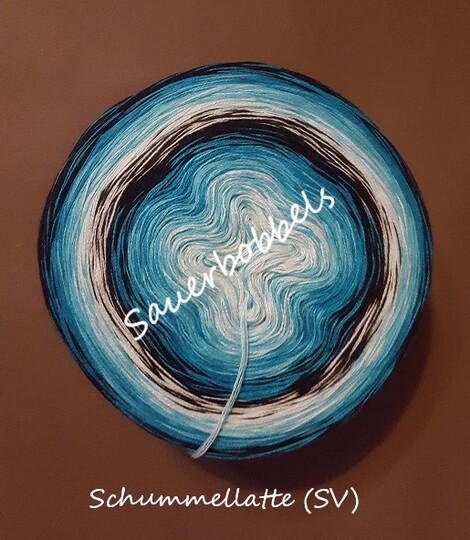 Garn: ... Ich empfehle: Bobbel – Verlaufsgarn, mit ca.1500 m 4-fädig, Nadelstärke: 4.0 …… allerdings kann es je nach Festigkeit oder Lockerheit der Häkelarbeit zu unterschiedlichen Garnverbräuchen kommen. Daher kann es zum Verbrauch des Garnes mit ca. 200 m mehr oder weniger kommen.