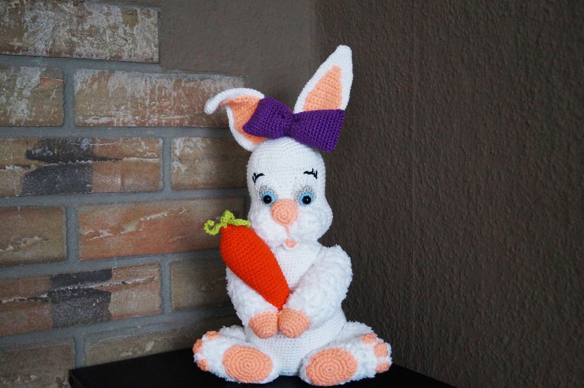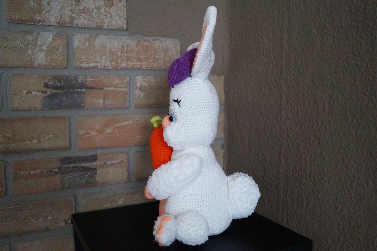 Funny , wie der Name schon sagt , ist ein fröhlicher Hase ,welcher seine leckere Möhre vor sich herträgt.