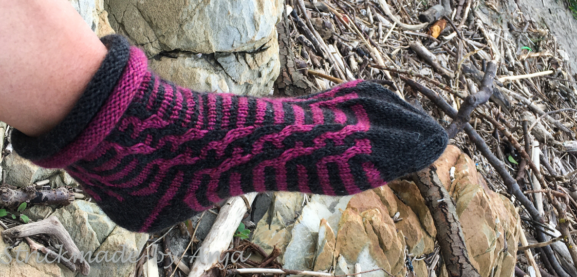 Die Shadow-Wrap Ferse wird nicht beschrieben, sondern nur auf das Video verwiesen. Aber jede andere Ferse ist auch machbar.