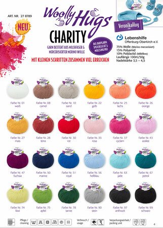 Für das abgebildete Modell habe ich die Woolly Hugs Charity benutzt. Das Garn ist einfach super zu verstricken, sehr weich, für Babys geeignet und mulesingfrei. Es besteht aus 75% Wolle (Merino mercerisiert) 15% Polyamid 10% Polylactid (Milkfibre) und hat eine Lauflänge von 100m/50g. Empfohlen wird eine Nadelstärke von 3,5 – 4,5.