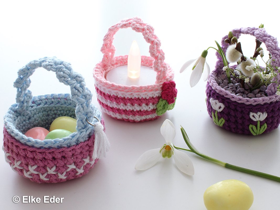 Süße kleine Körbchen – bunt und fröhlich und für vielerlei Zwecke verwendbar sind diese zuckersüßen Minikörbchen.