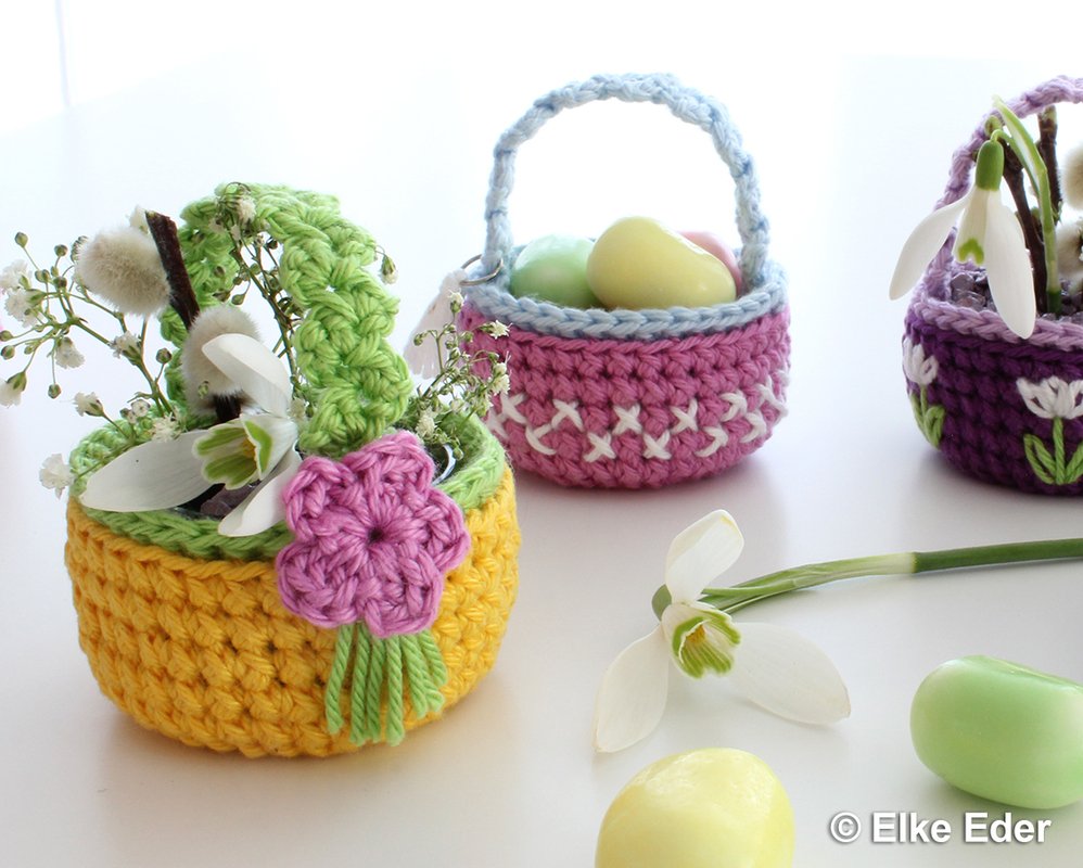Die Körbe passen wundbar zu den "Sweet Little Chicks" (s. Fotos). Die Anleitung für die Hühner findest du hier: https://www.crazypatterns.net/de/items/58131/sweet-little-chicks-suesse-huehner-haekelanleitung