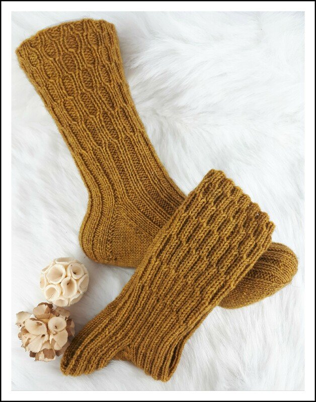Hiermit erhältst Du eine komplette Strickanleitung über 6 Seiten der BeeBee Socken. Diese Socken wirken mit dem Wabenmuster im Schaft sehr robust und trotzdem edel.