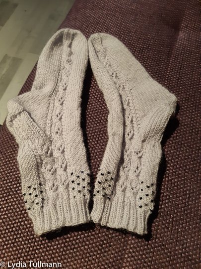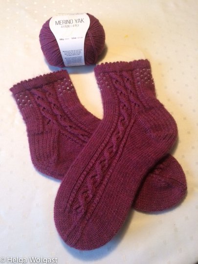 Die PDF Datei enthält die Anleitung für die oben beschriebenen Socken gestrickt aus 4fach Sockenwolle.