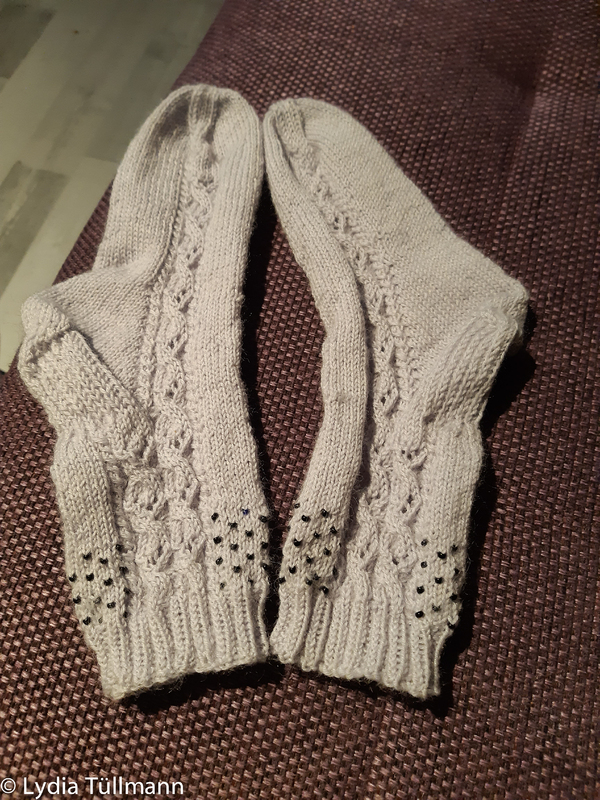 Du benötigst 4-fädiges Sockengarn mit einer Lauflänge von 420m/100g Deiner Wahl und dazu 72 passende Perlen.