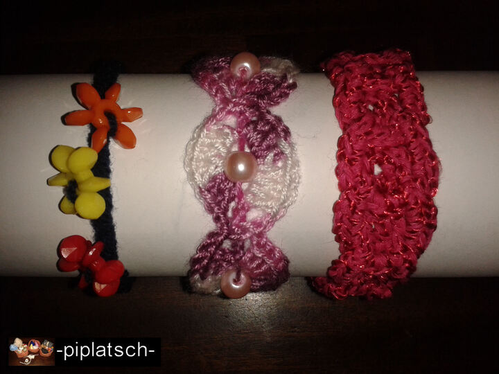 Die Armbänder sind sehr leicht nachzuarbeiten, wenn man die Grundbegriffe des Häkelns kennt.