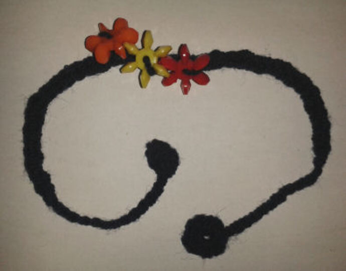 Einfach ein paar Garnreste zusammensuchen, 1 Häkelnadel (Größe 1,5-2-3), Perlen in verschiedenen Größen und Farben, Knöpfe und dann kann man loslegen.