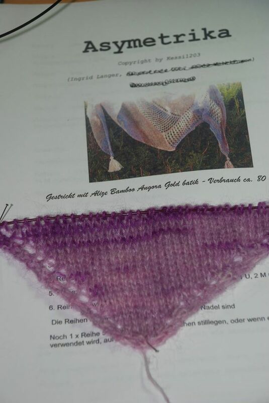 Je nach verwendetem Garn und NS kann das Tuch größer oder kleiner ausfallen.