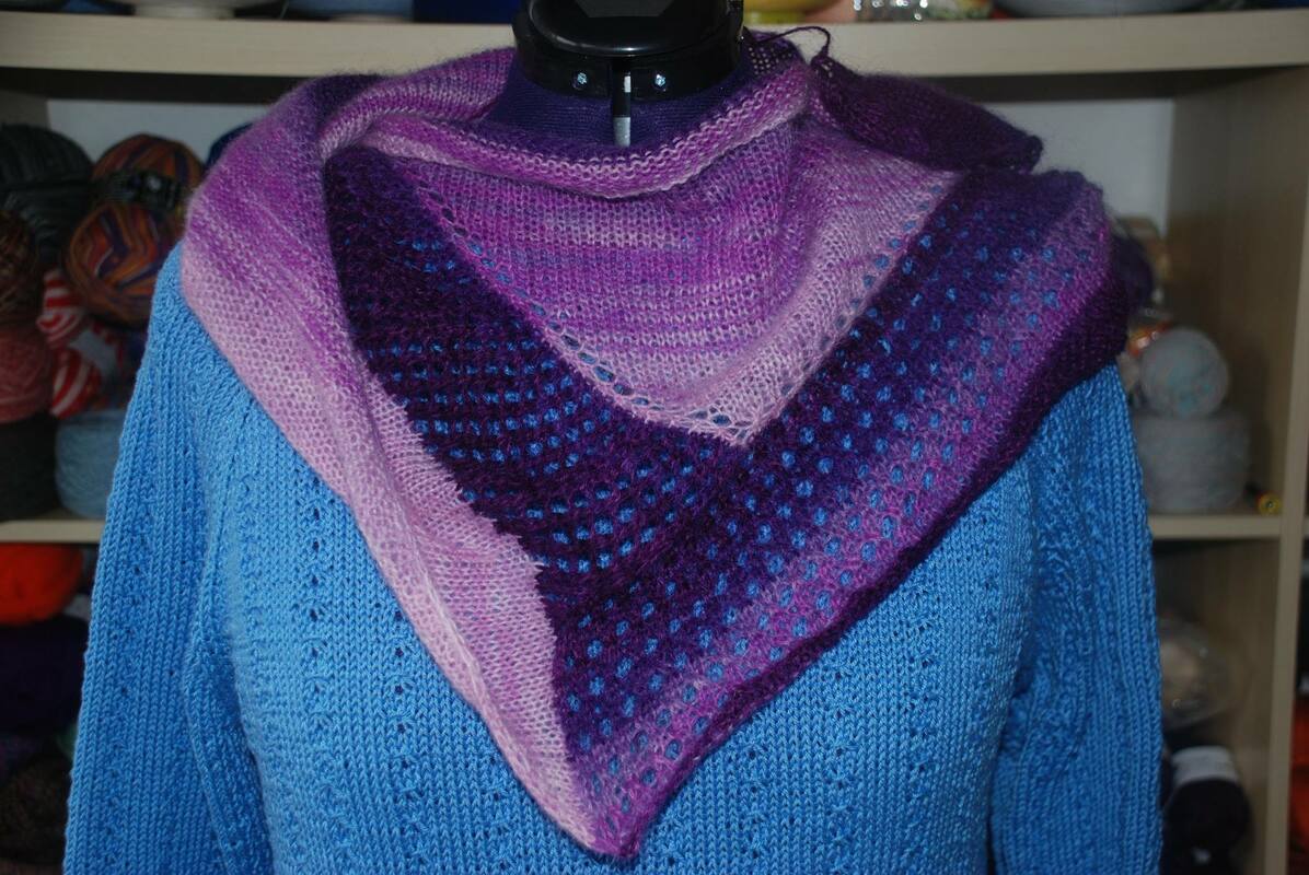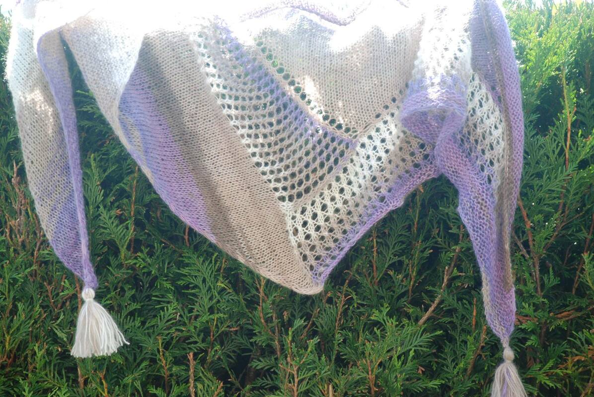 Die Effeke entstehen durch Farbverlaufsgarn - das Tuch kann aber auch durchaus mit verschiedenen Restgarnen gestrickt werden.